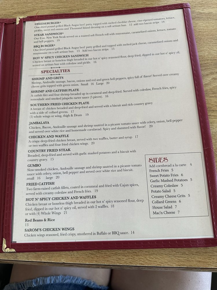 Sarom’s Southern Kitchen Menu (2025 Update)
